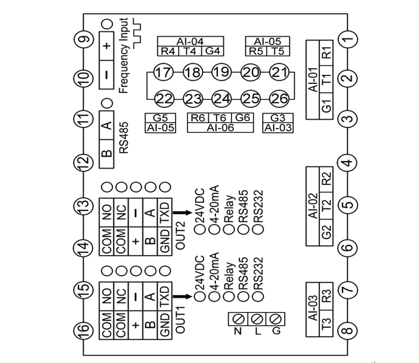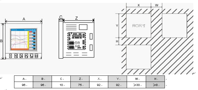 u 測量精度:±(0.2%FS+1)個字 u 電源電壓: AC85-240V、DC110V、DC24V u 顯 示:3.2寸TFT彩色320×240點(diǎn)陣 u 帶流量累積 ◆ 輸入規(guī)格: 熱電偶:K、S、N、E、J、T、B、R、Wer526/523 熱電阻:PT100、CU50、CU100 線性電壓:0-5V、1-5V、0-10V、0-20mV...... 線性電流:4-20mA、0-10mA...... 脈沖輸入:訂貨時須知脈沖大小 其它輸入:R、WRe526、mV、其它 ◆ 輸出規(guī)格: 變送輸出:4-20mA、0-10V......(最多2路) 繼 電 器:R2A、R2B、R2C(最多2路) 饋 電:U1/U2/U3(最多2路) 打印/通訊接口:S1、S2、P USB接口:U u 記錄時間: 記錄間隔可任意設(shè)1、2、3、4、5、6、 7、8……秒。 八筆記錄:360天 (記錄間隔1分鐘) u 斷電保護(hù)時間: 用FLASH MEMORY保存設(shè)置參數(shù)和歷史 數(shù)據(jù),斷電后永久保存,采用硬件時鐘, 掉電后也能準(zhǔn)確運(yùn)行。 u 環(huán)境溫度:-20-50℃ u 環(huán)境濕度:0-85%RH ◆ 外形尺寸:96×96×85mm u 安裝尺寸:92×92×75mm |